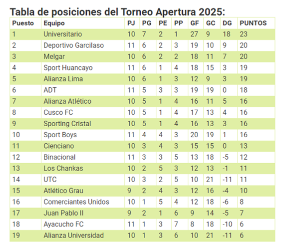 Este fin de semana se disputará una nueva ronda de compromisos de la Liga 1 Te Apuesto 2025, correspondientes a la duodécima jornada del Torneo Apertura. Universitario de Deportes, líder en solitario, buscará mantenerse en lo más alto de la tabla de posiciones. Deportivo Garcilaso, Melgar, Sport Huancayo y Alianza Lima, sus más cercanos perseguidores, intentarán seguir en el pelotón de arriba.